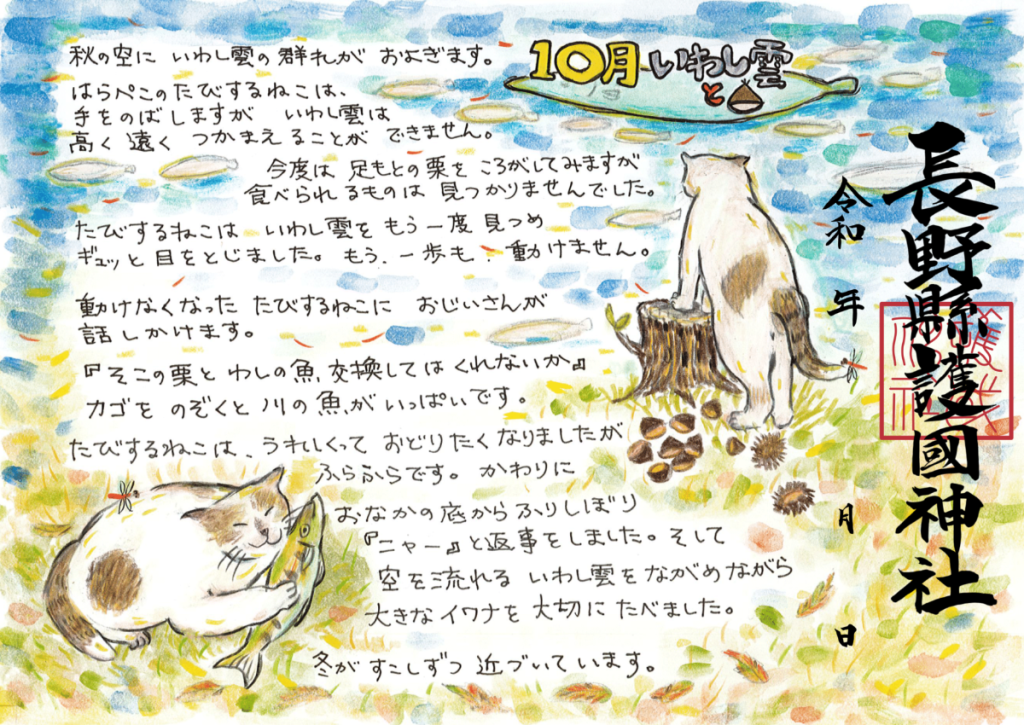 令和7年3月から始まりました『たびするねこ』の絵本御朱印になります